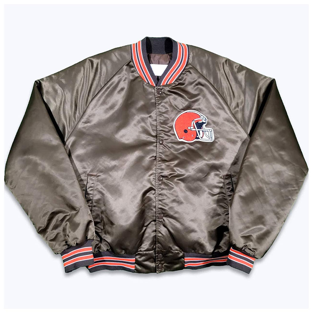 Cleveland Browns 80s Brown Bomber Satin Jacket