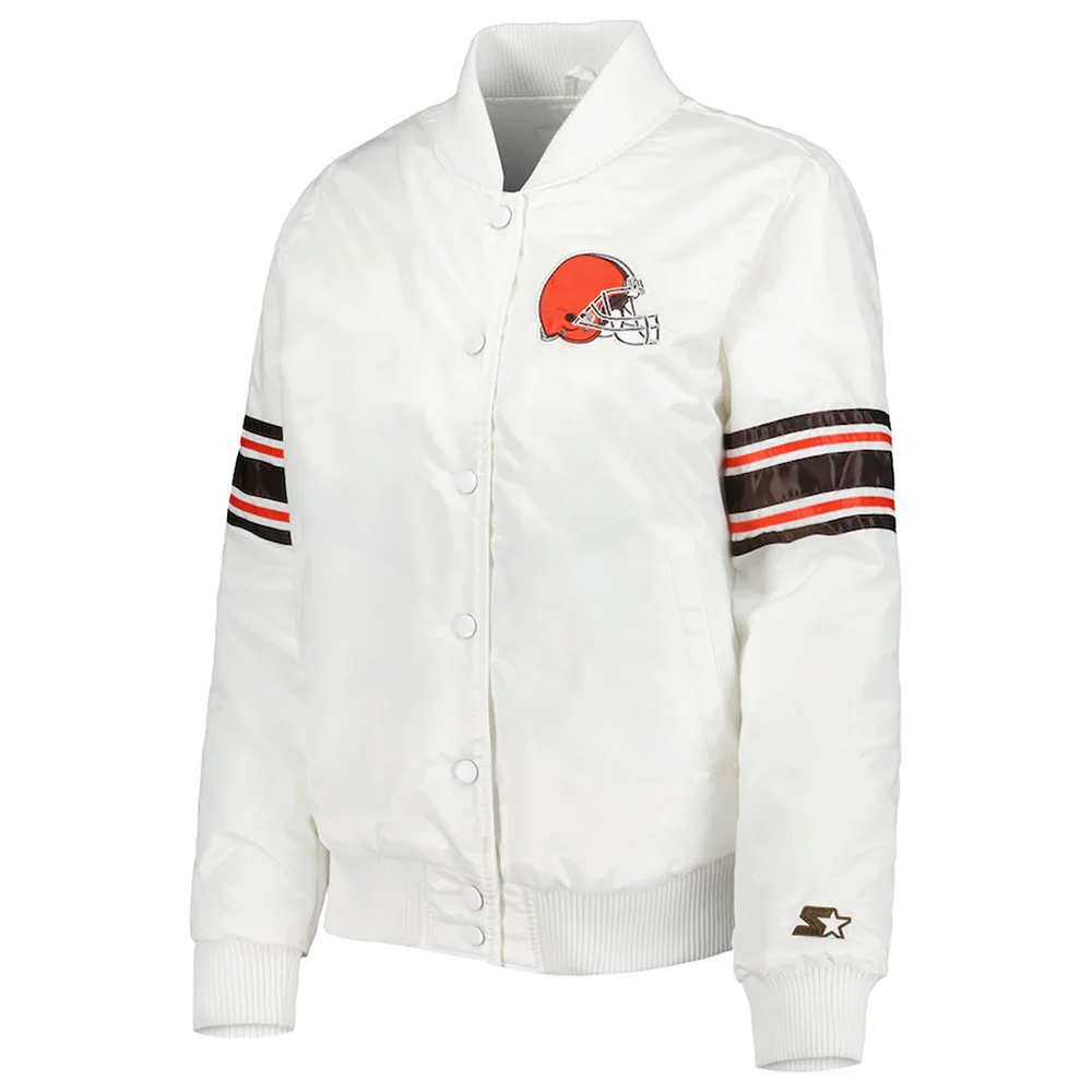 Cleveland Browns Line Up White Satin Jacket