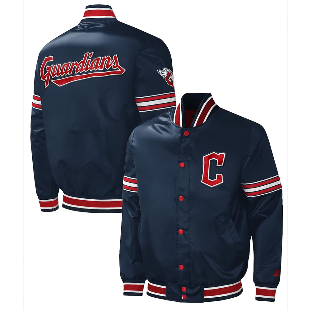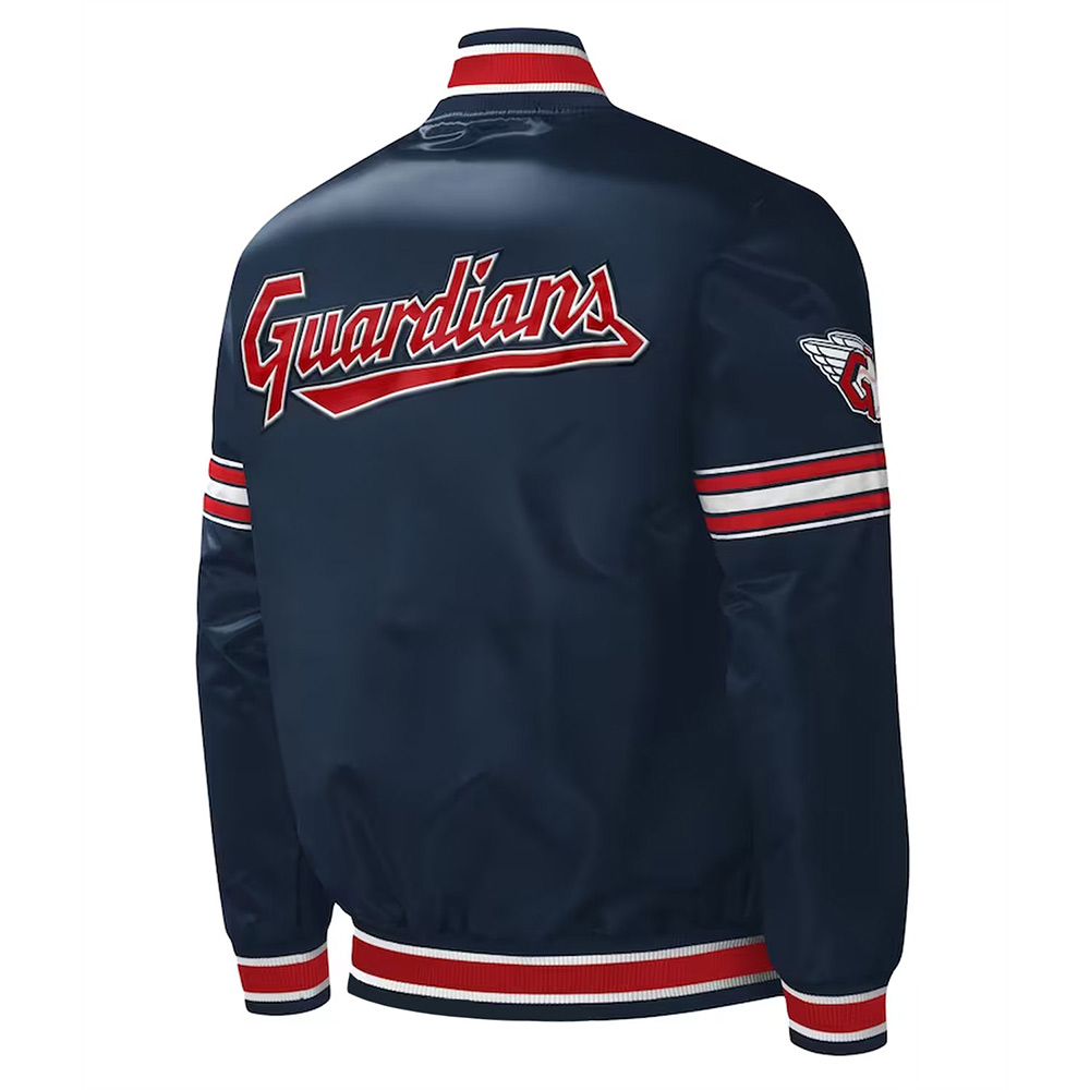 Cleveland Guardians Midfield Navy Varsity Satin Jacket