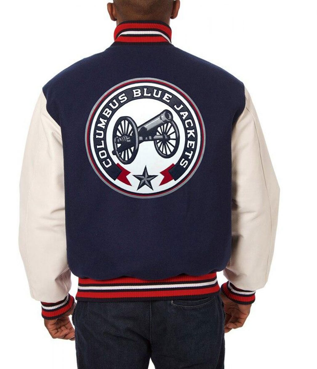 Columbus Blue Jackets White Leather and Wool Blue Jacket