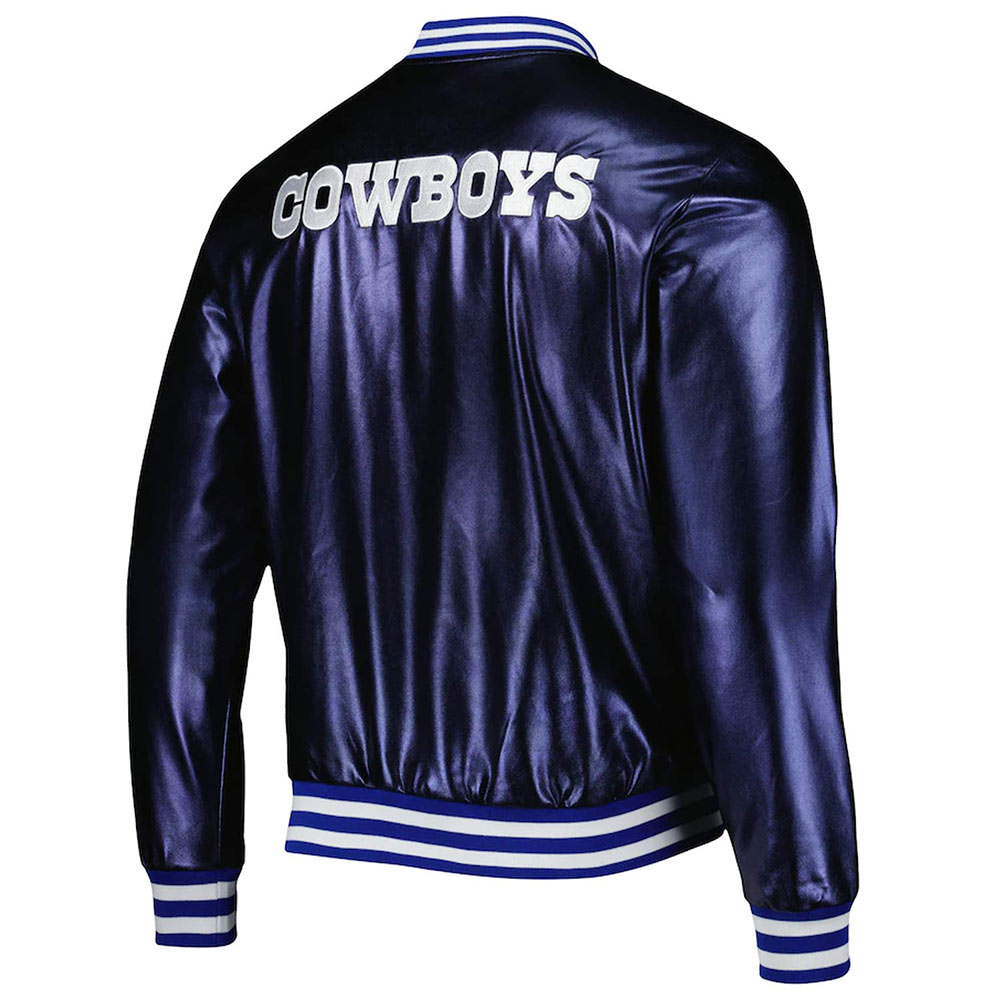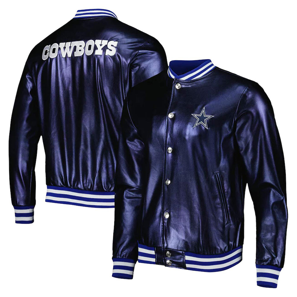 Dallas Cowboys Metallic Navy Leather Jacket