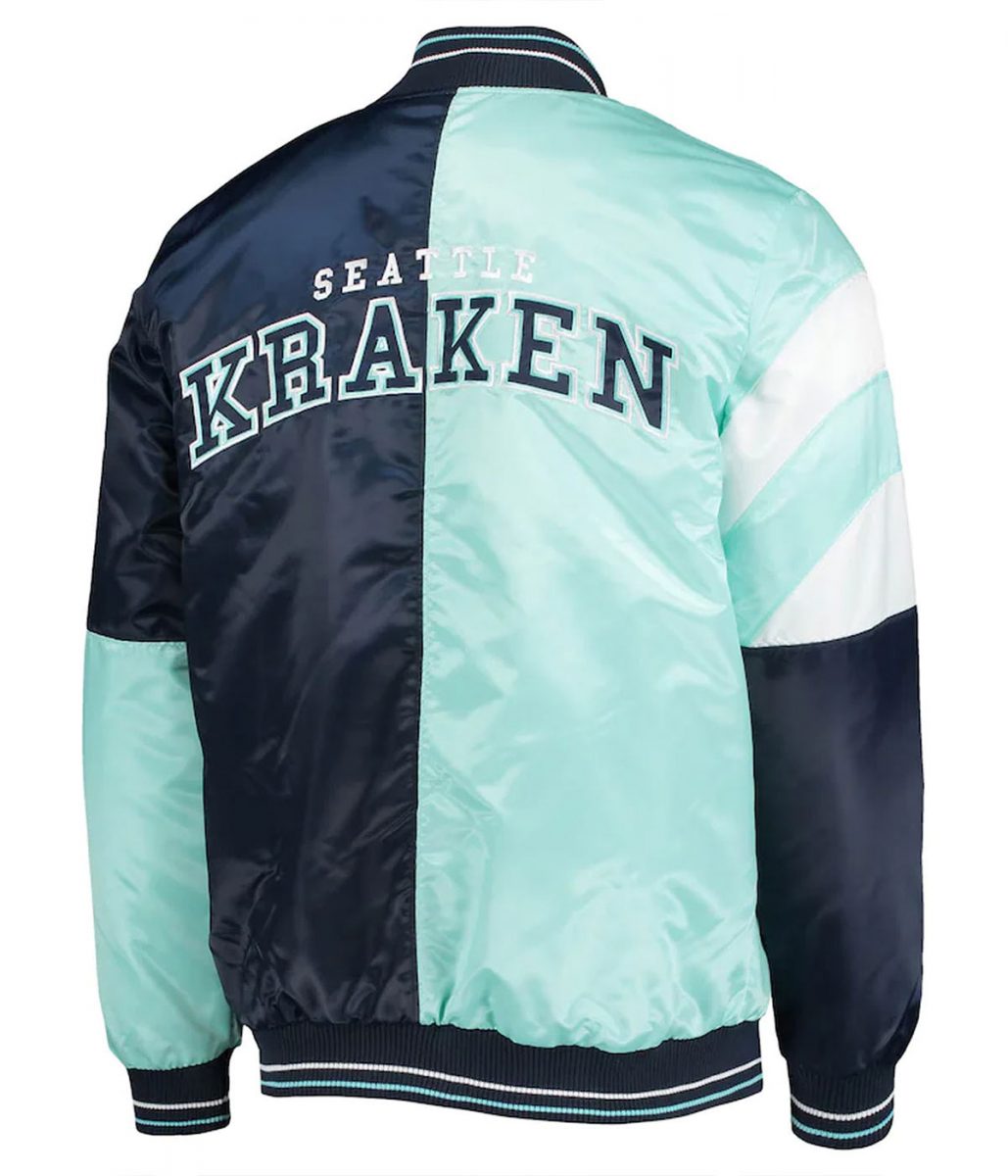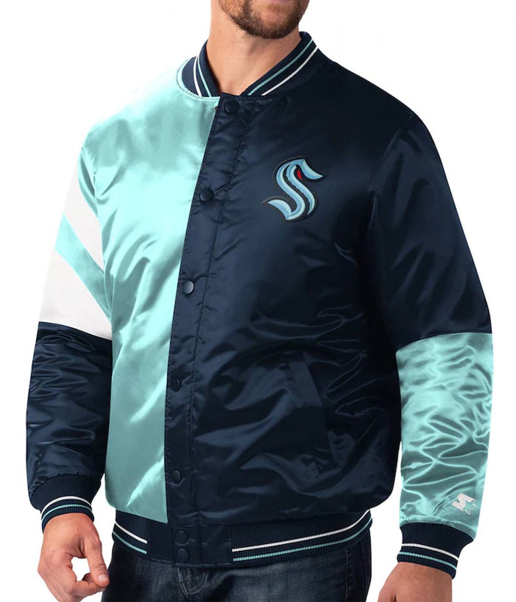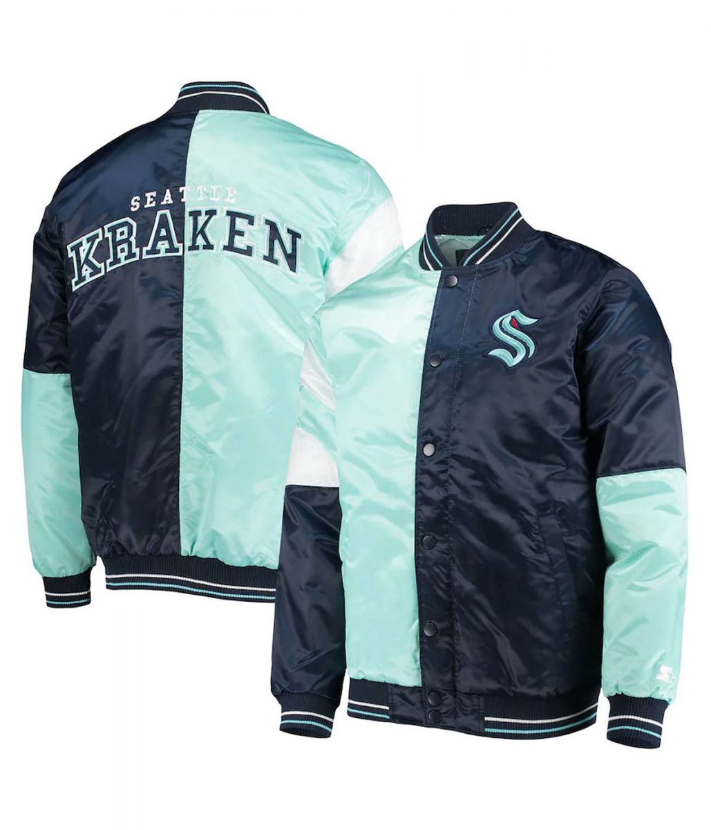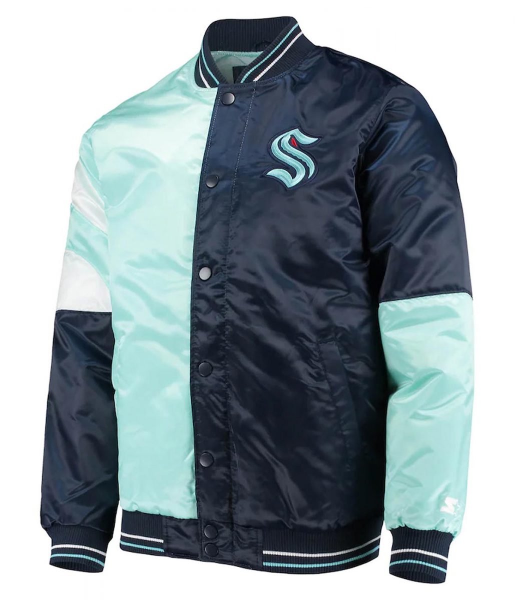 Deep Seattle Kraken The Leader Navy Blue and Light Blue Satin Jacket