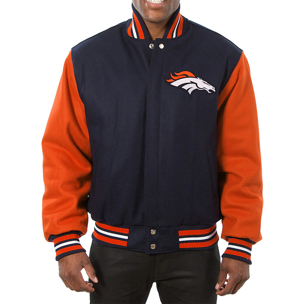 Denver Broncos Blue and Orange Varsity Orange Wool Jacket
