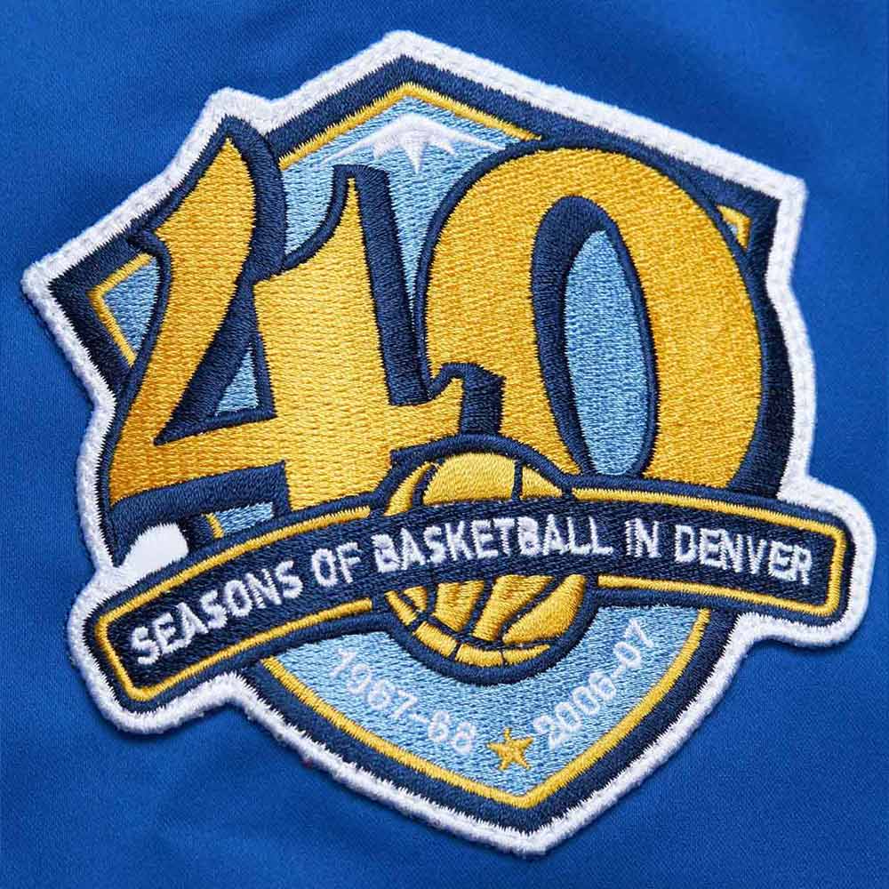 - Logo: Denver Nuggets vintage logo on the front, sleeve, and back