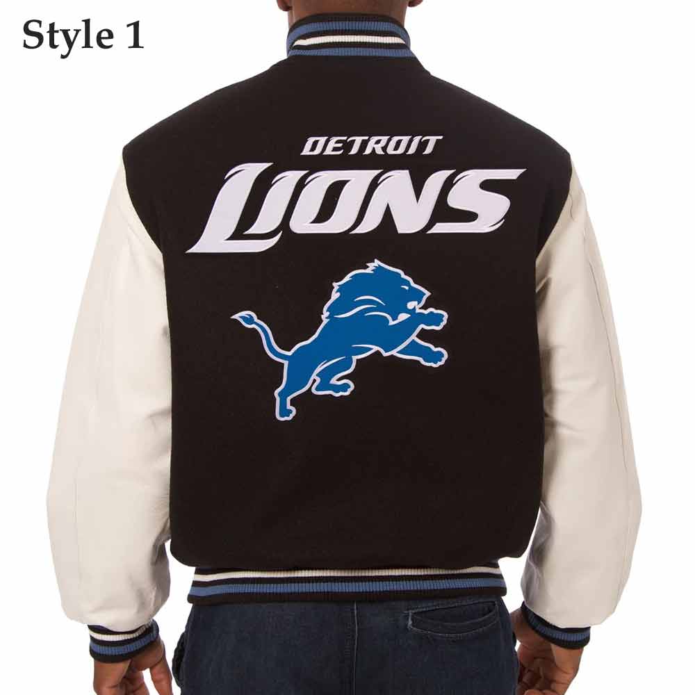 Detroit Lions Black and White Varsity Jacket