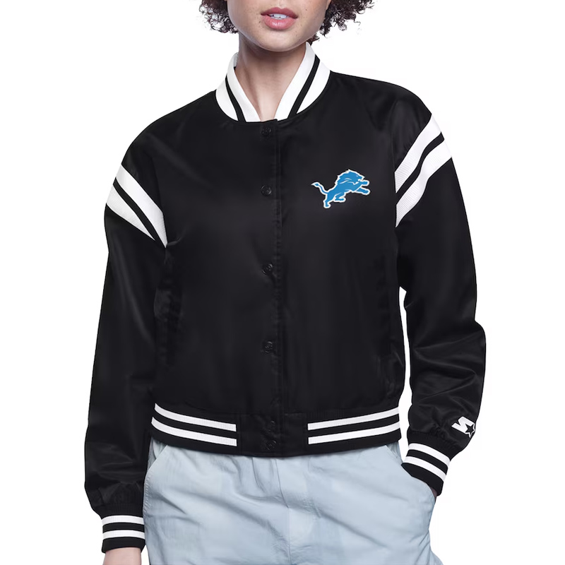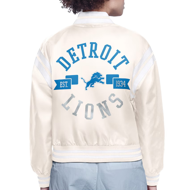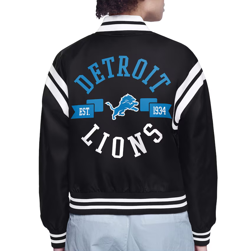 Detroit Lions Printed Logo Varsity Satin Jacket