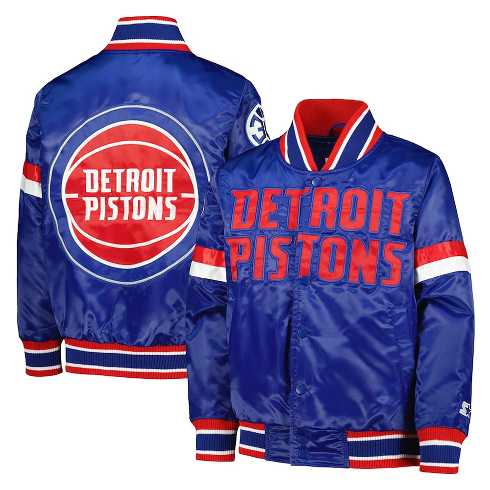 Detroit Pistons Youth Home Game Blue Satin Jacket