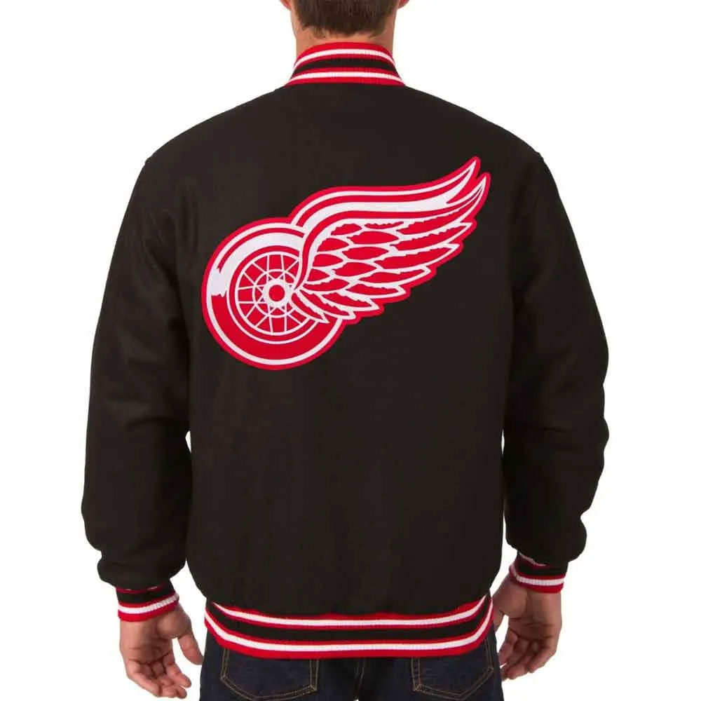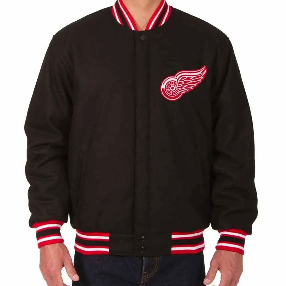 Detroit Red Wings Gray/Black Varsity Wool Full-Snap Jacket