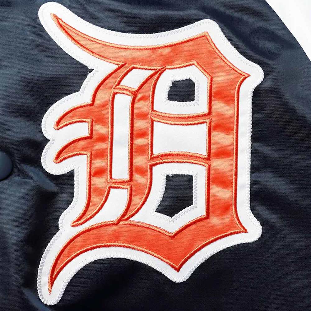 Detroit Tigers Tri-Color Navy Blue/Orange Varsity Satin Jacket