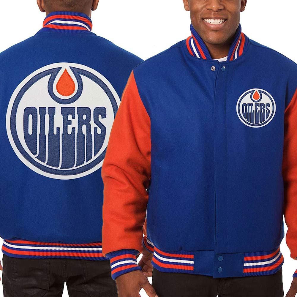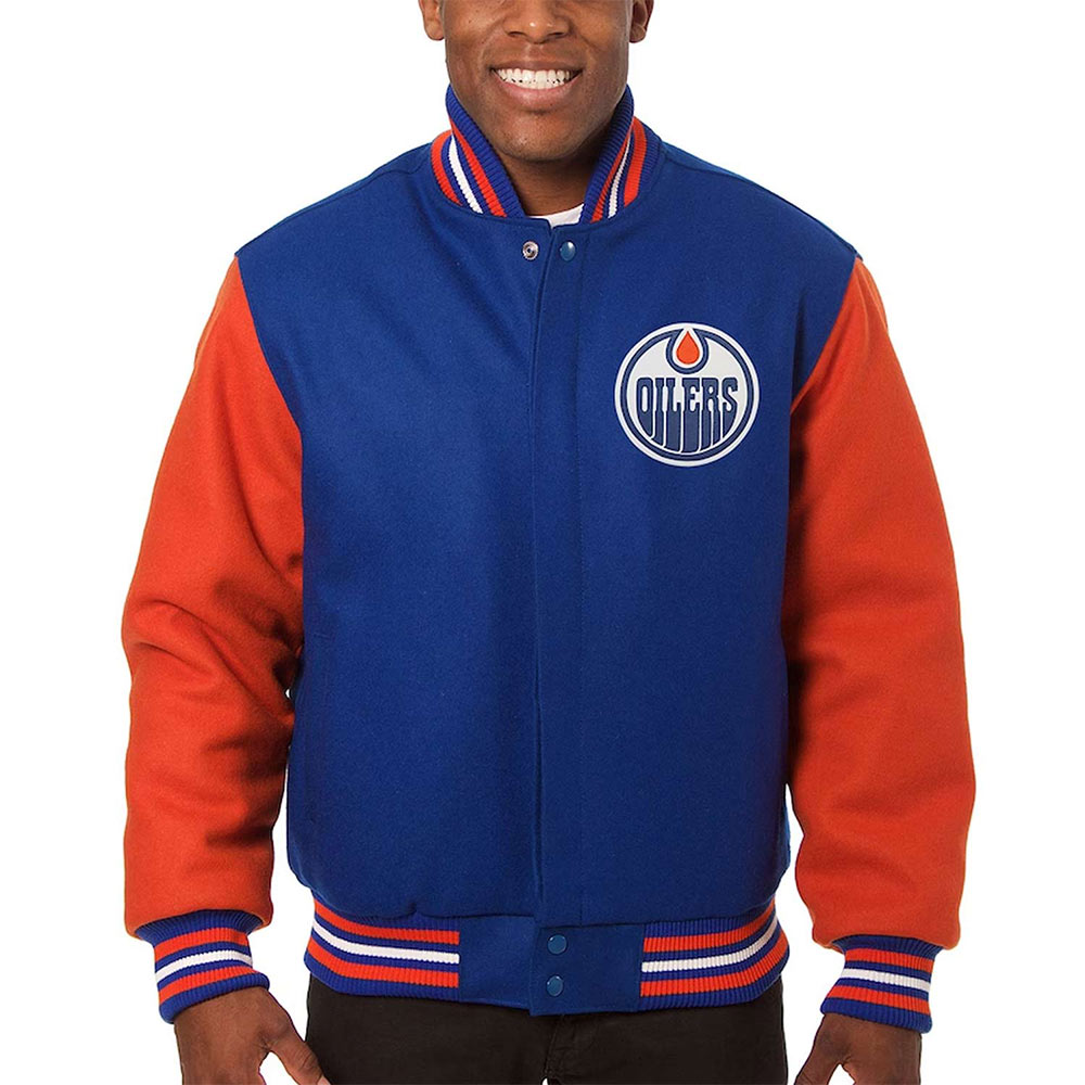 Edmonton Oilers Two-Tone Varsity Royal/Orange Wool Jacket