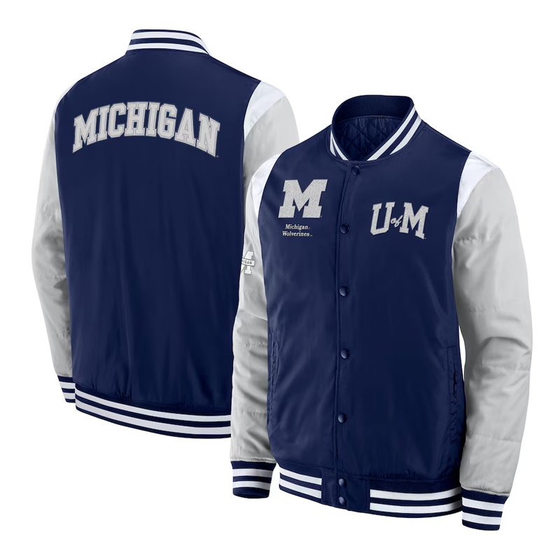 - Logo: Various logos on chest, Michigan lettering are featured on back