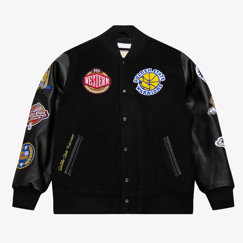 Golden State Warriors Black Out Vintage Logo Varsity Jacket