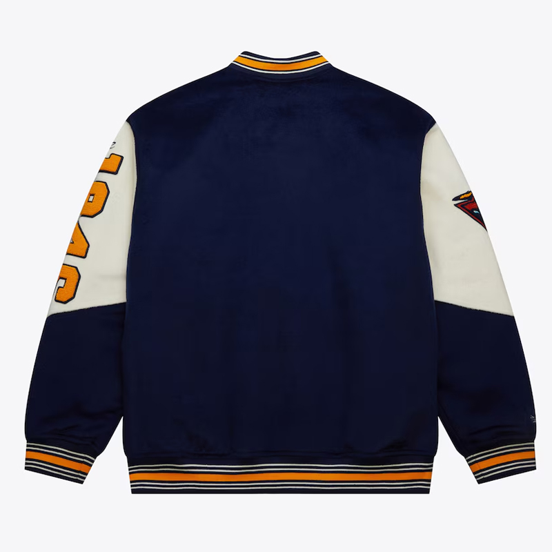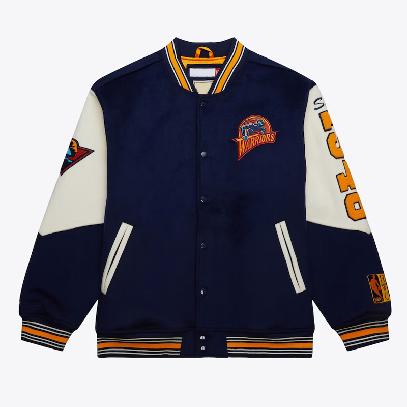 Golden State Warriors Team History Navy Vintage Logo Varsity Jacket