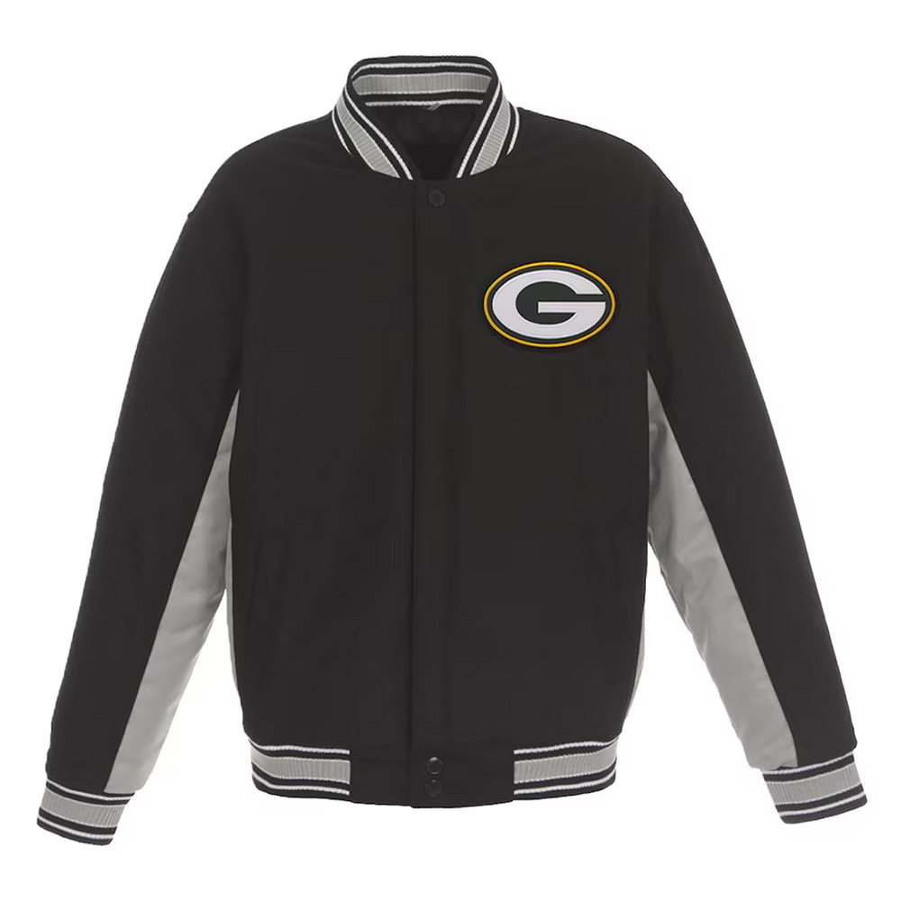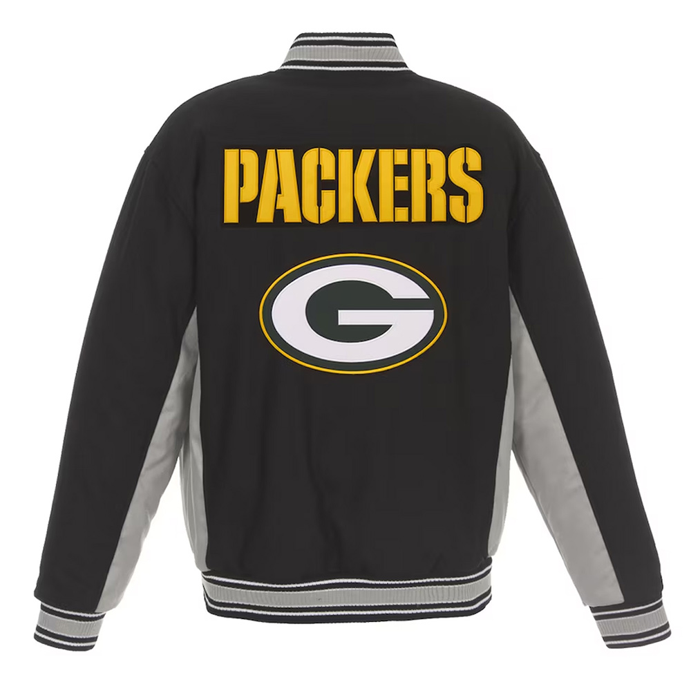 Green Bay Packers Black and Gray Varsity Wool Jacket