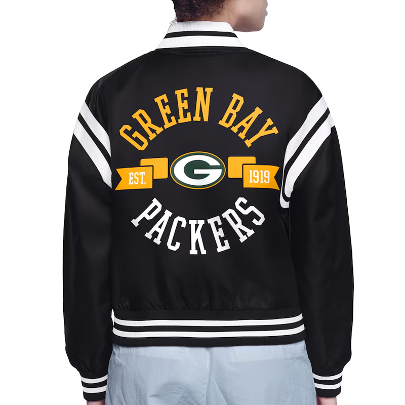 Green Bay Packers Printed Logo Varsity Satin Jacket
