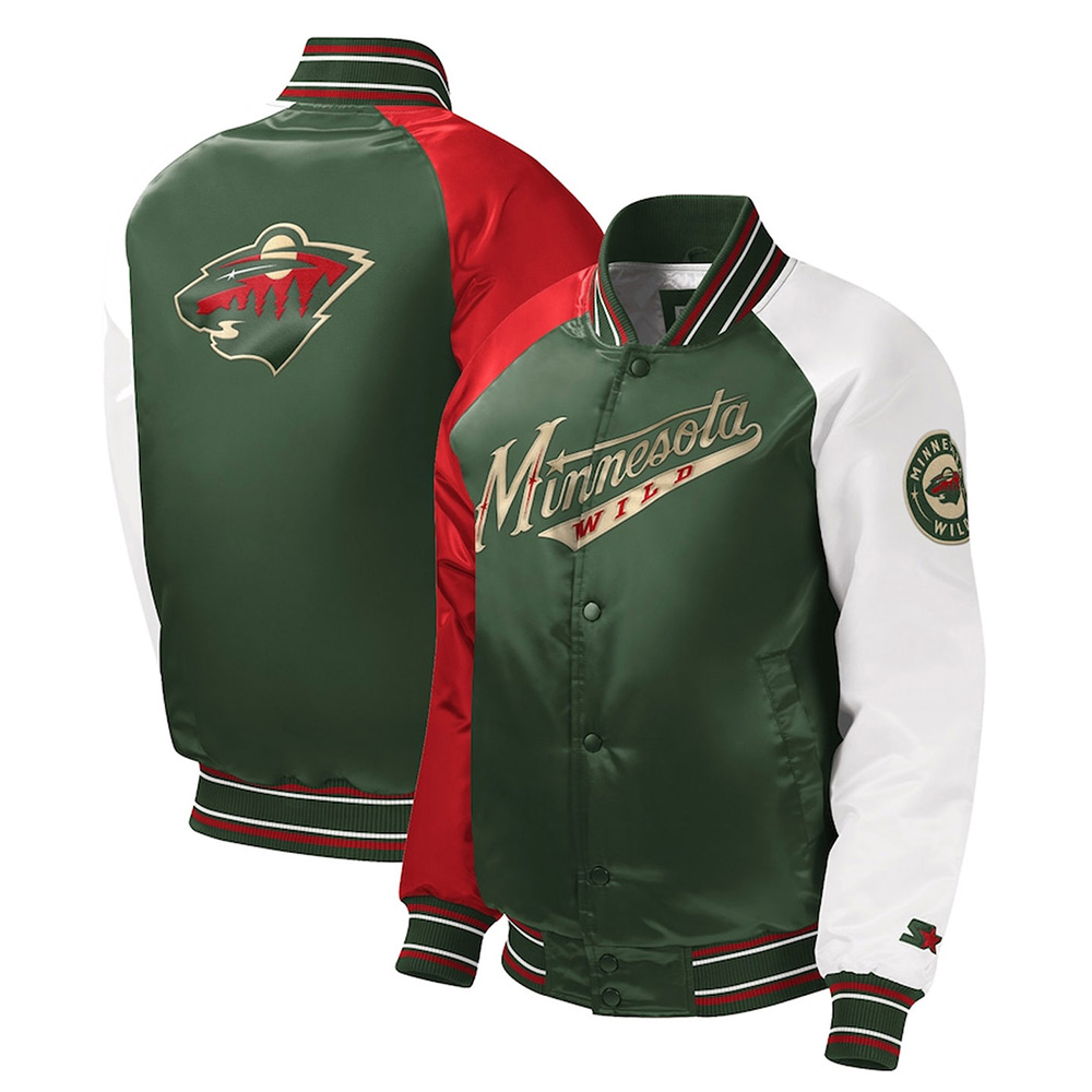 Green Youth Minnesota Wild Varsity Satin Jacket