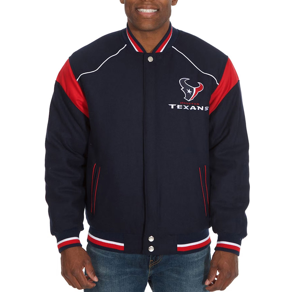 Houston Texans Teddy Embroidered Navy Varsity Wool Jacket
