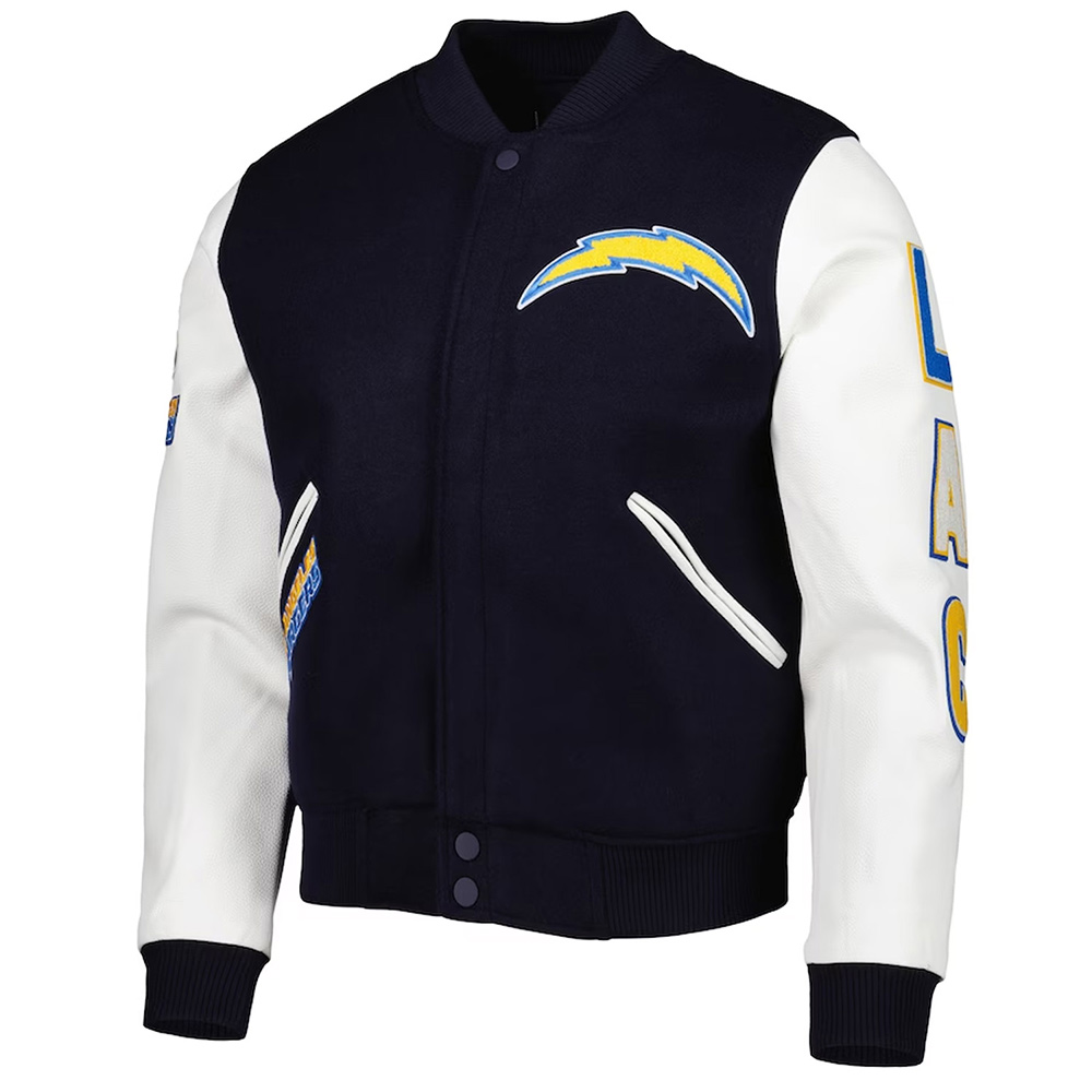LA Chargers Logo Letterman Navy and White Jacket