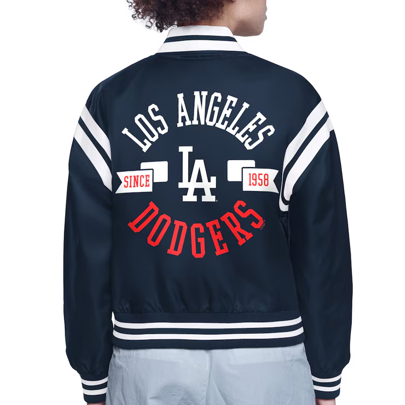 LA Dodgers Printed Logo Black Varsity Satin Jacket