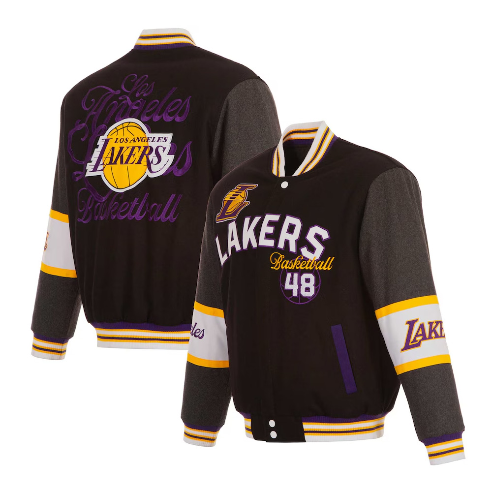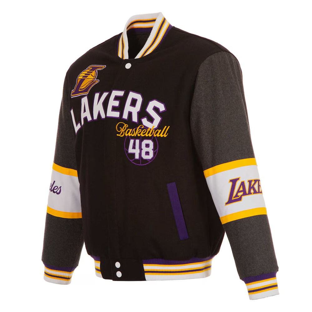 LA Lakers Black and Charcoal Varsity Wool Jacket