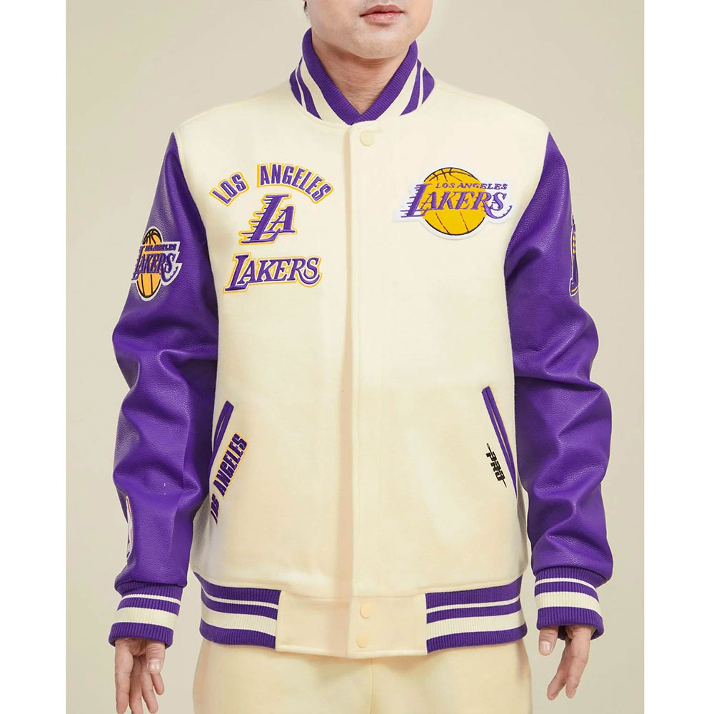 LA Lakers Retro Classic Rib Off White and Purple Varsity Jacket