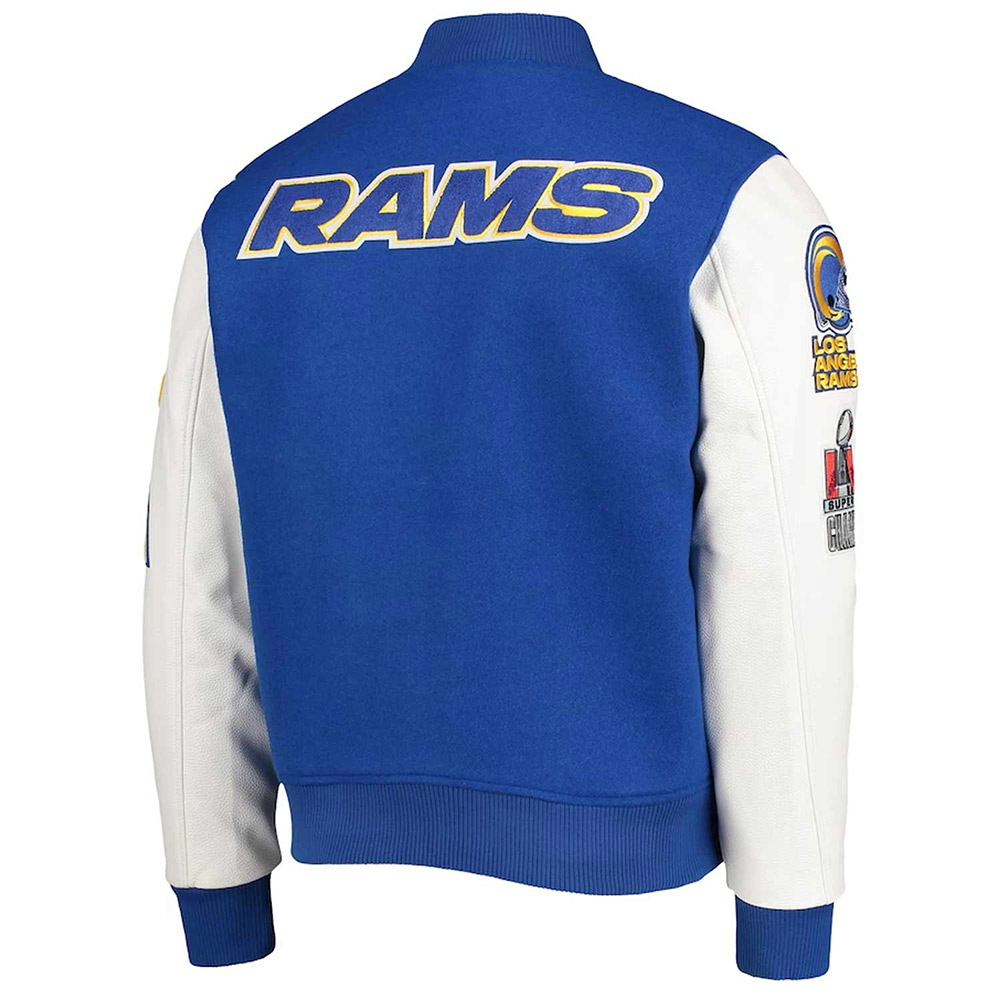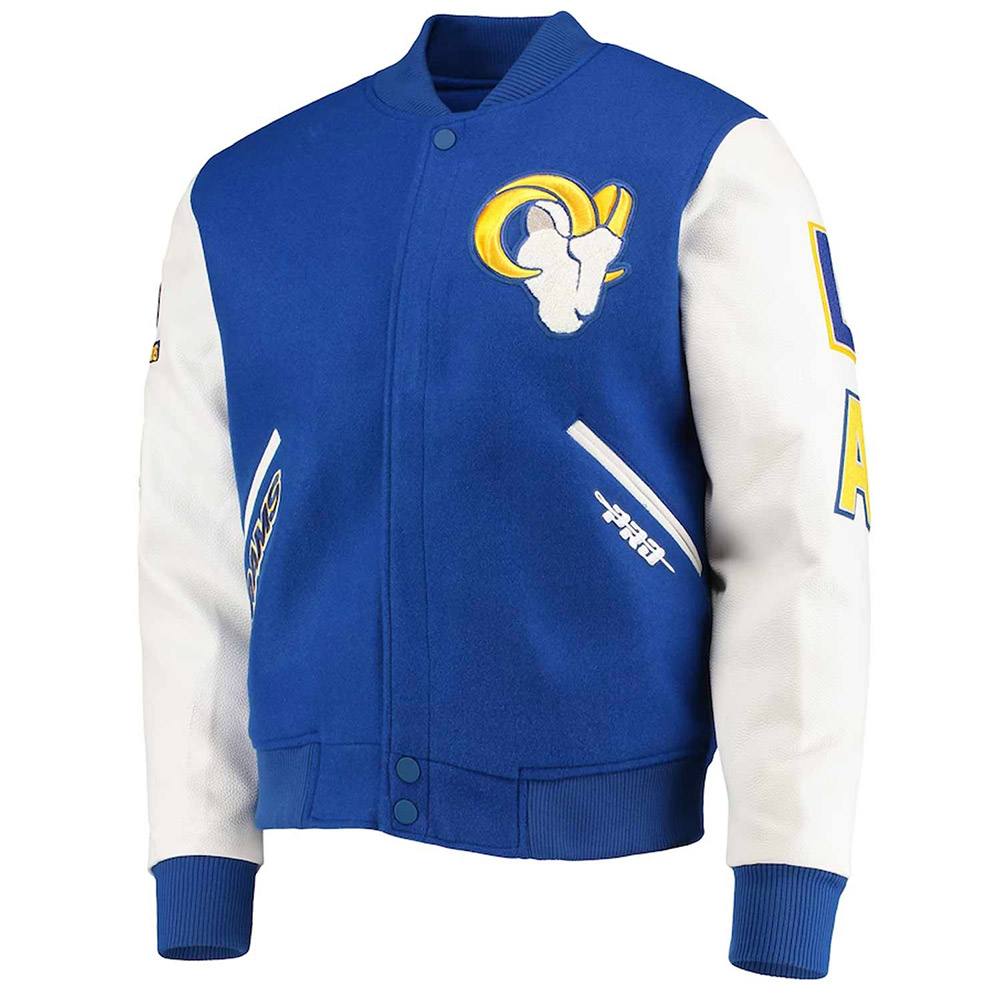 LA Rams Logo Royal and White Varsity Jacket