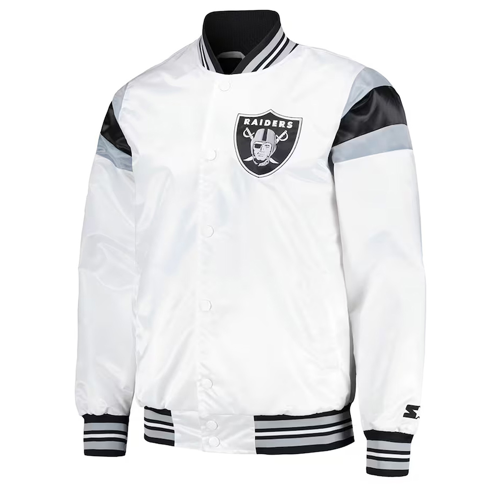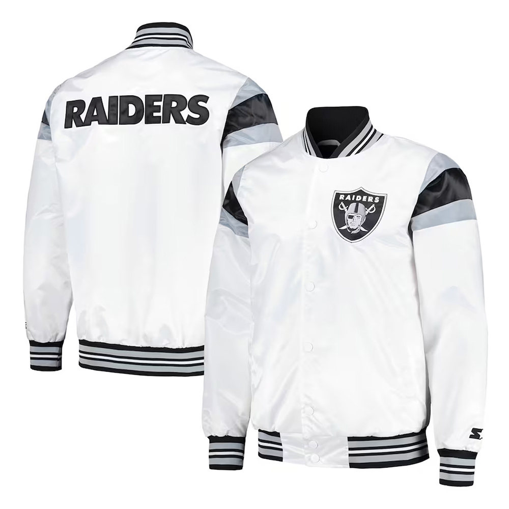 Las Vegas Raiders Midweight White Satin Jacket