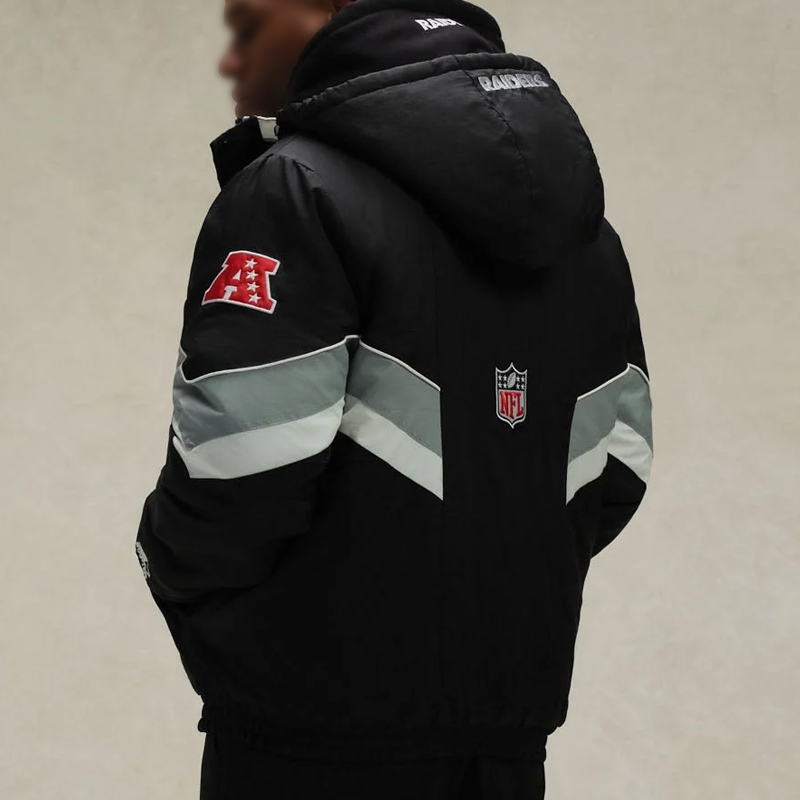 - Logo: Various logos on chest , Raiders lettering are featured on hood