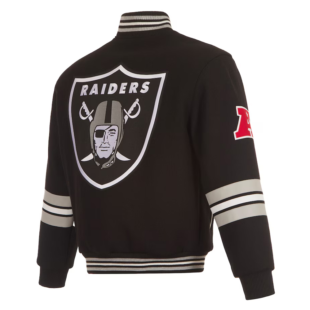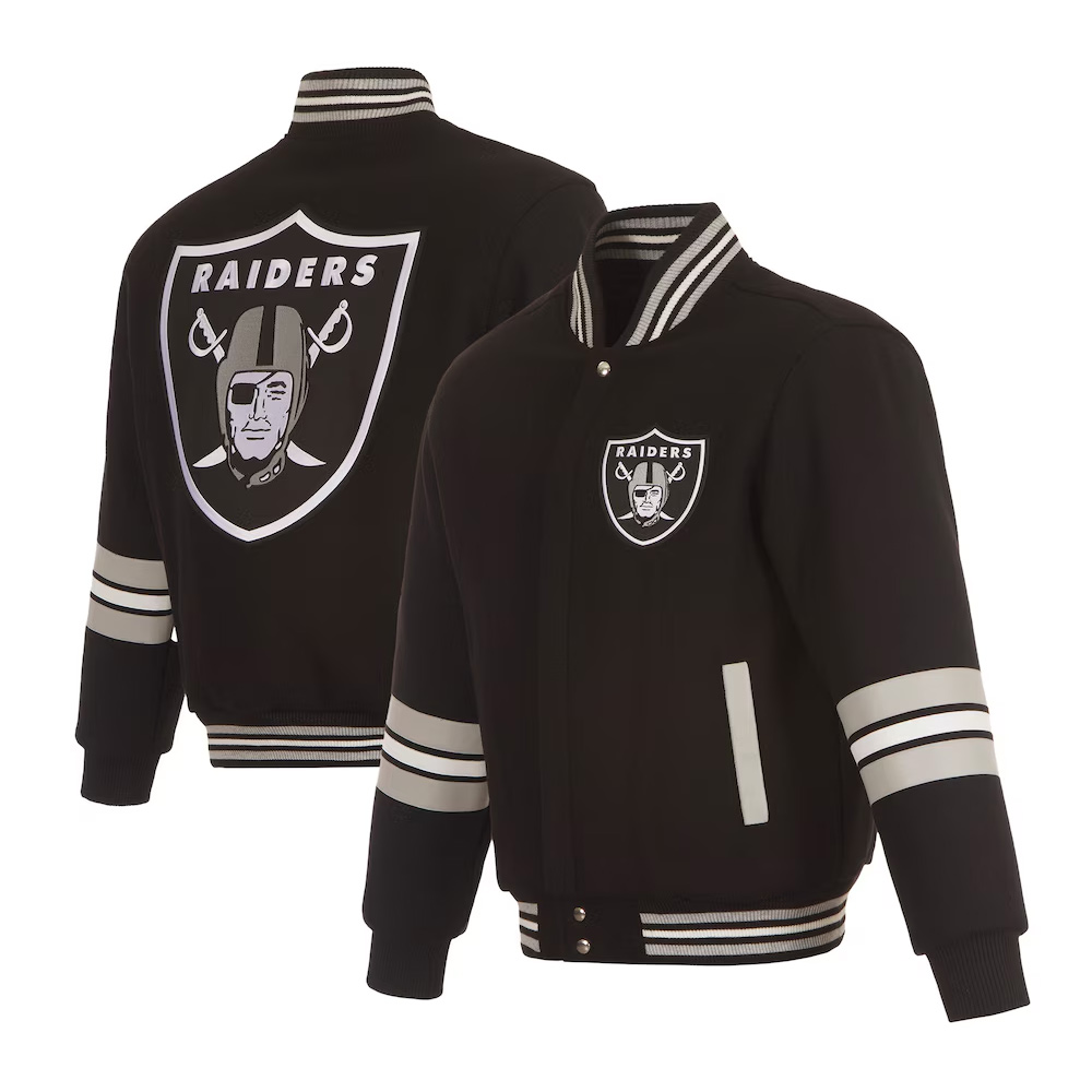 Las Vegas Raiders Striped Black Varsity Wool Jacket
