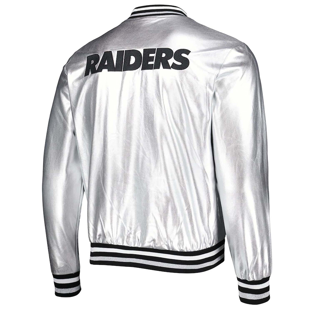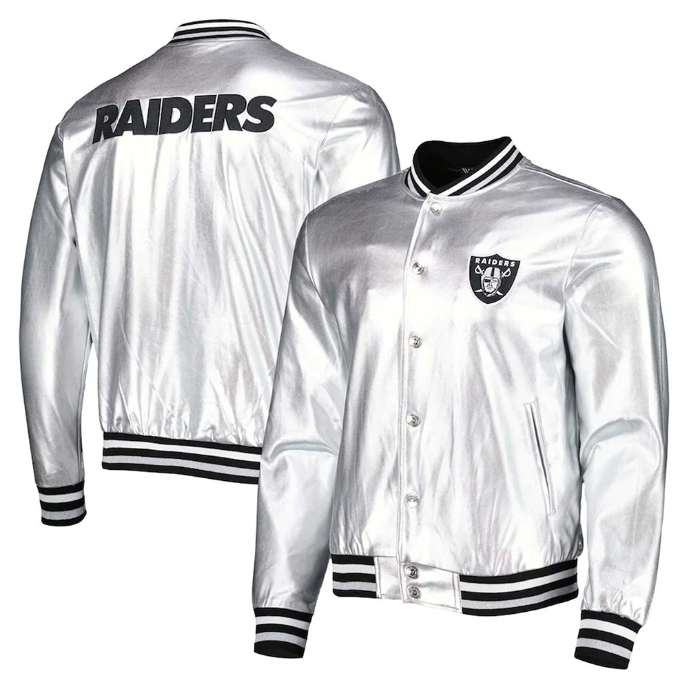 Las Vegas Raiders The Wild Collective Silver Metallic Leather Jacket
