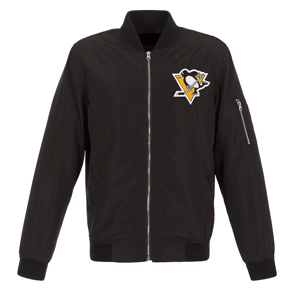 Lightweight Pittsburgh Penguins Nylon Bomber Black Jacket