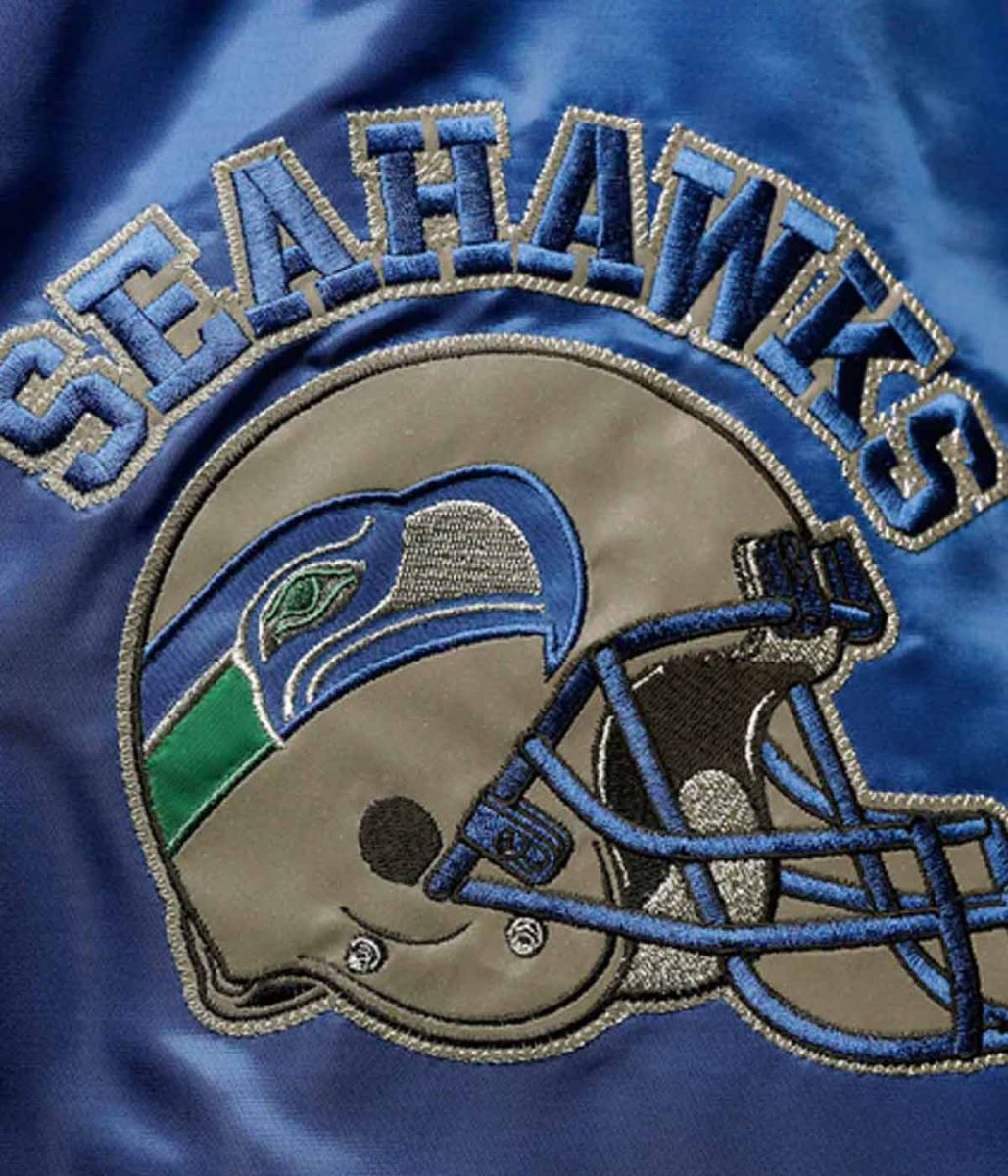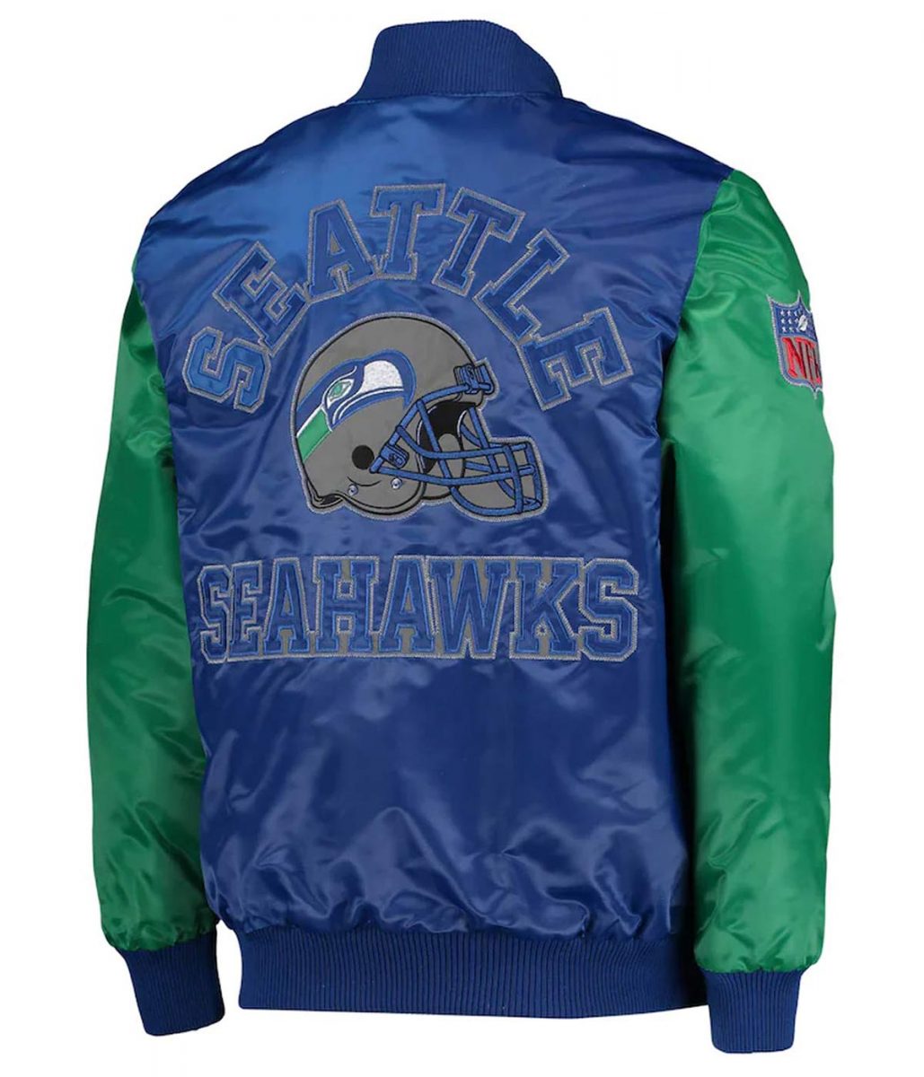 Locker Room Seattle Seahawks Throwback Navy and Neon Green Satin Jacket