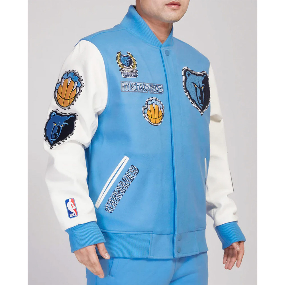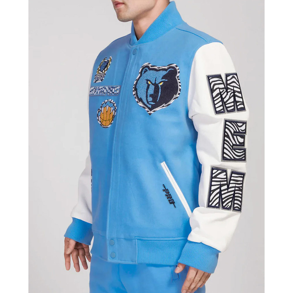 Memphis Grizzlies Animal Patches Blue Varsity Jacket