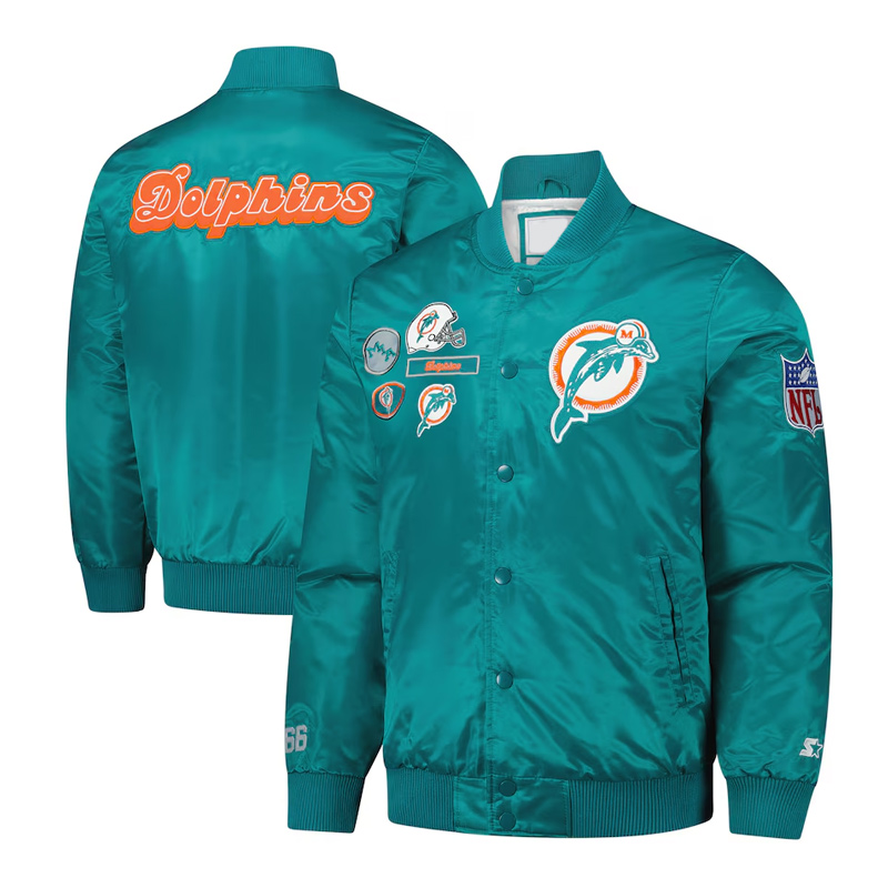 Miami Dolphins Exclusive Aqua Varsity Satin Jacket