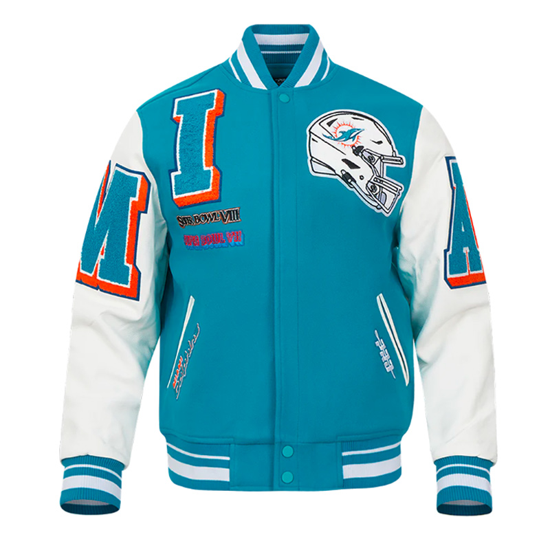 Miami Dolphins Mashup Rib Varsity Wool/Leather Jacket
