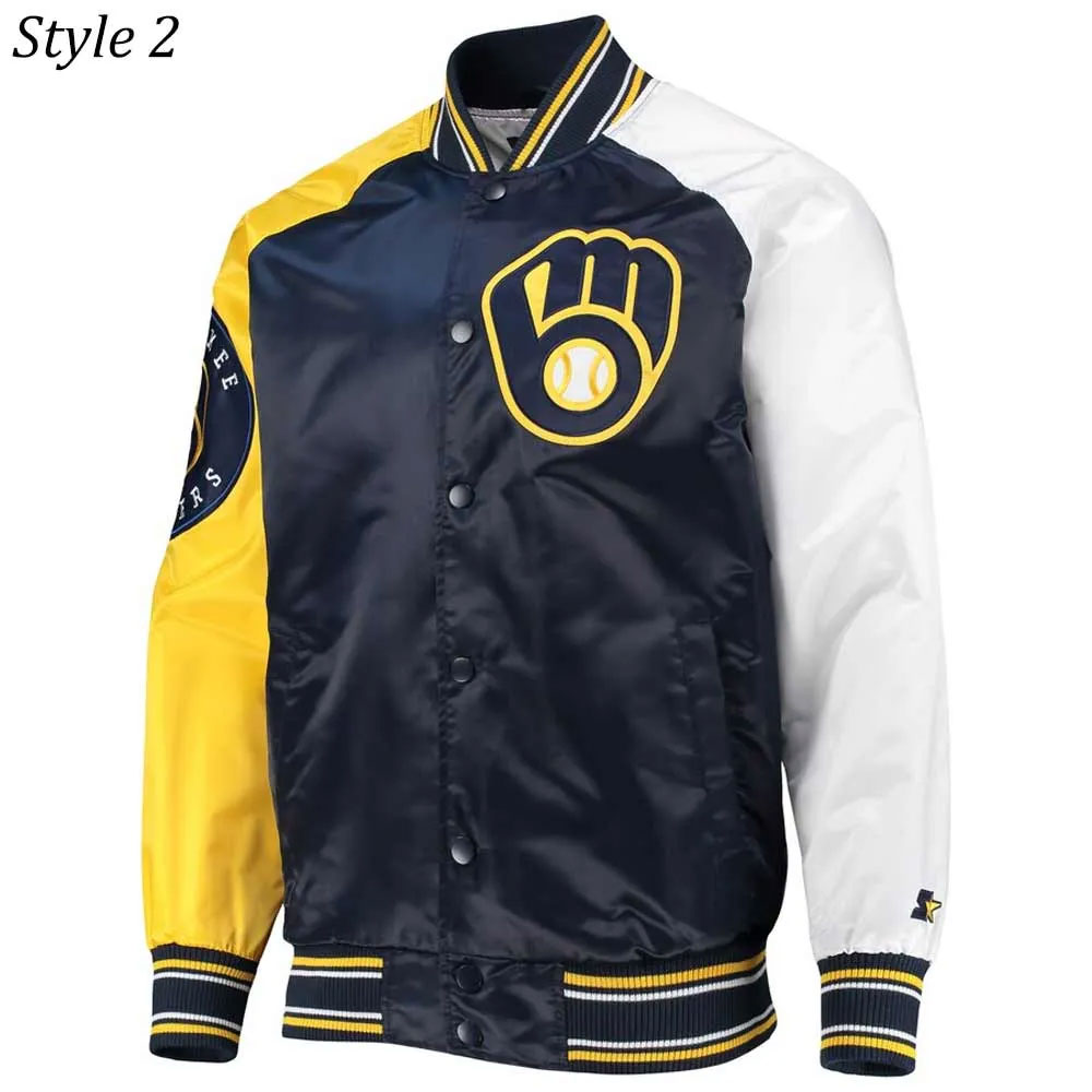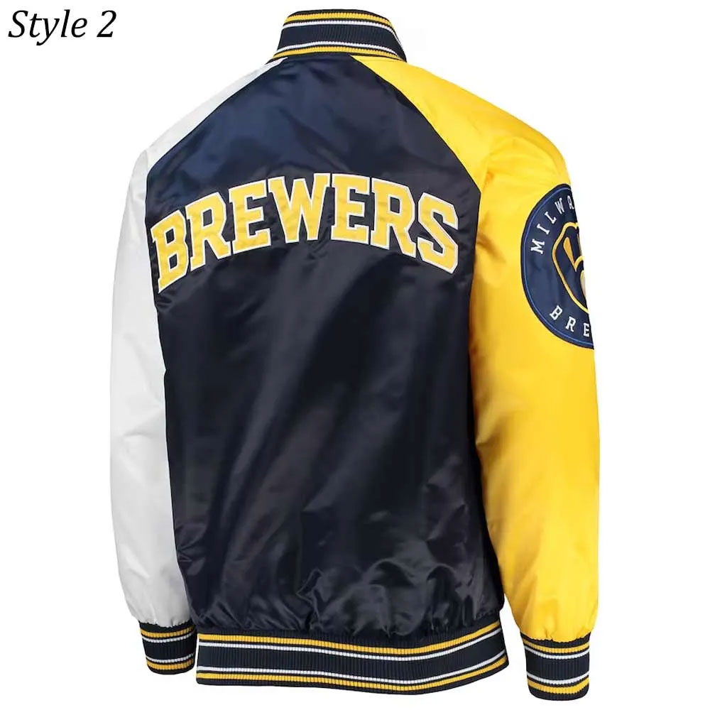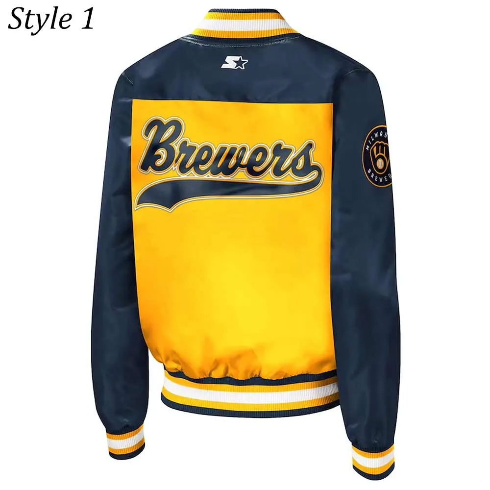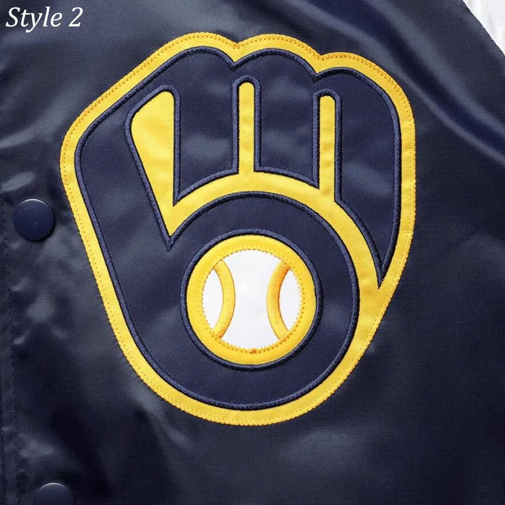 Milwaukee Brewers Gold and Navy Varsity Satin Jacket