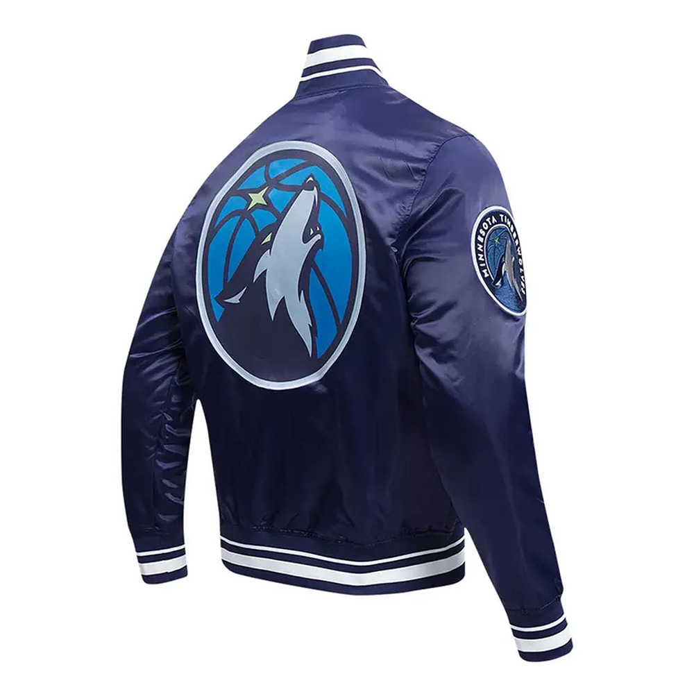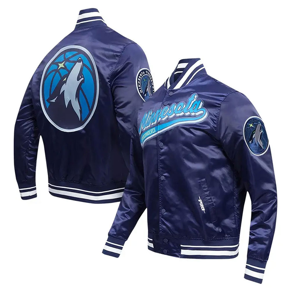 Minnesota Timberwolves Script Tail Navy Satin Jacket