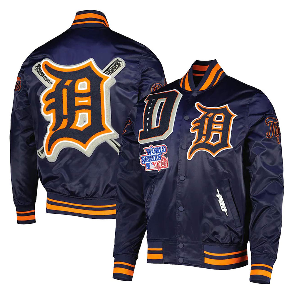 Navy Blue Detroit Tigers Mash Up Satin Jacket