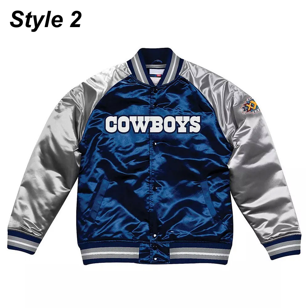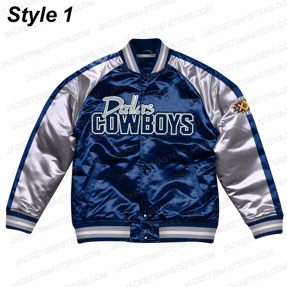 Navy Blue/Silver Dallas Cowboys Varsity Satin Jacket