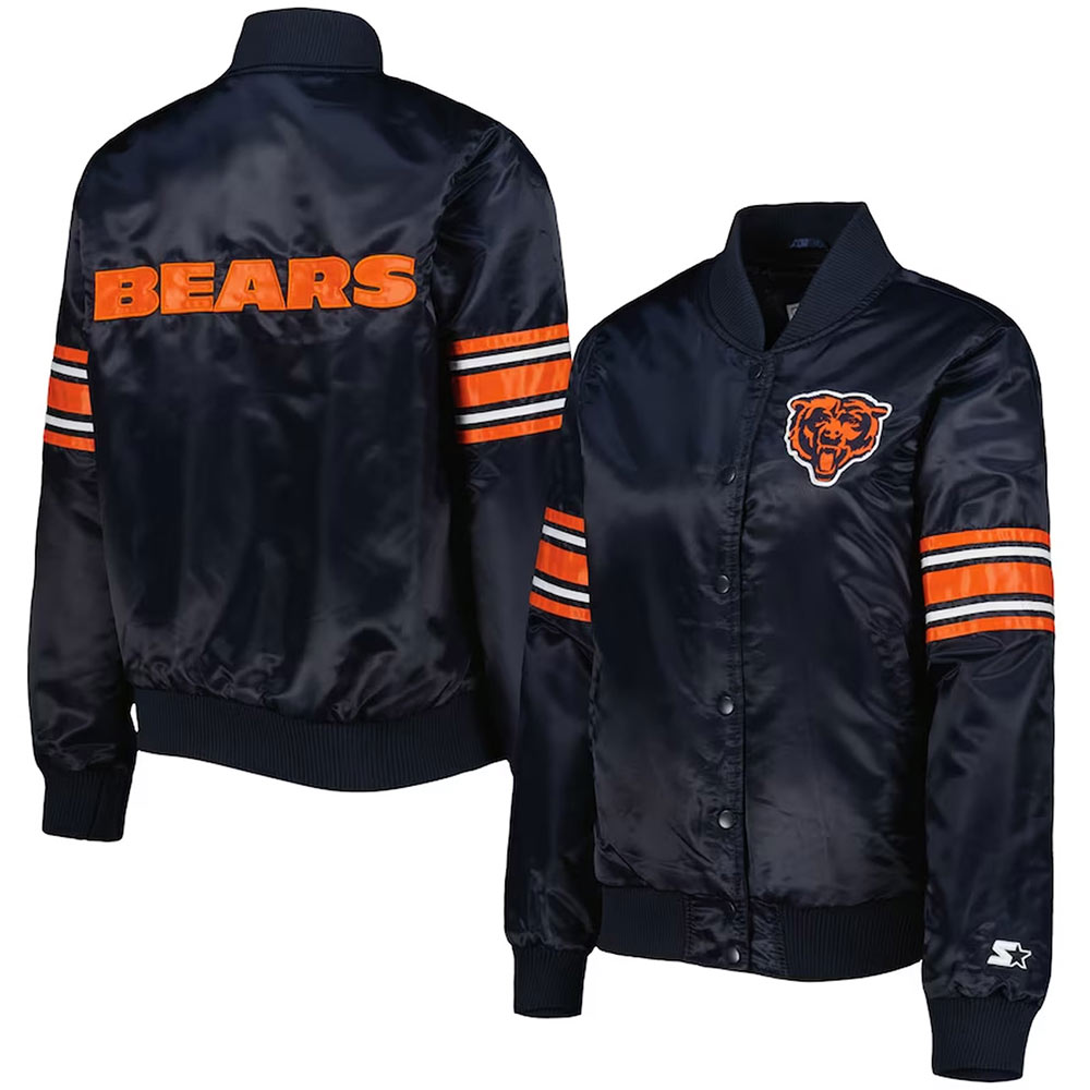 Navy Chicago Bears Line Up Varsity Satin Jacket