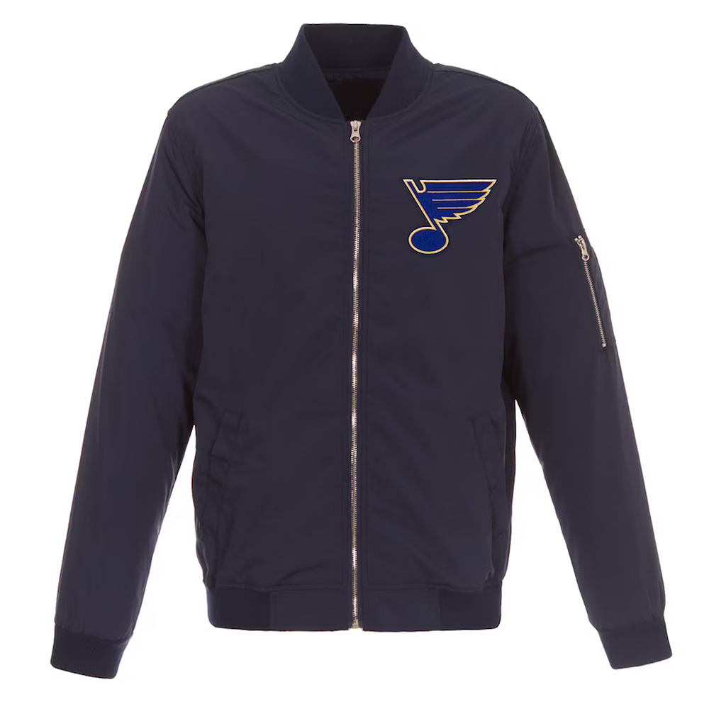 Navy St. Louis Blues Nylon Lightweight Bomber Jacket