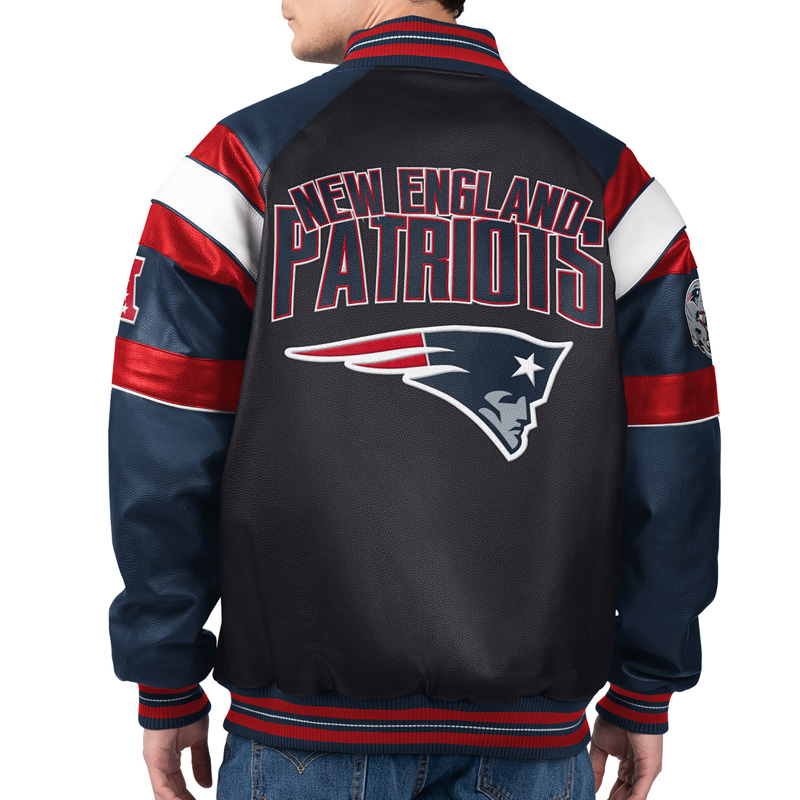 - Logo: New England Patriots distinctive logo on the front, sleeves, and back