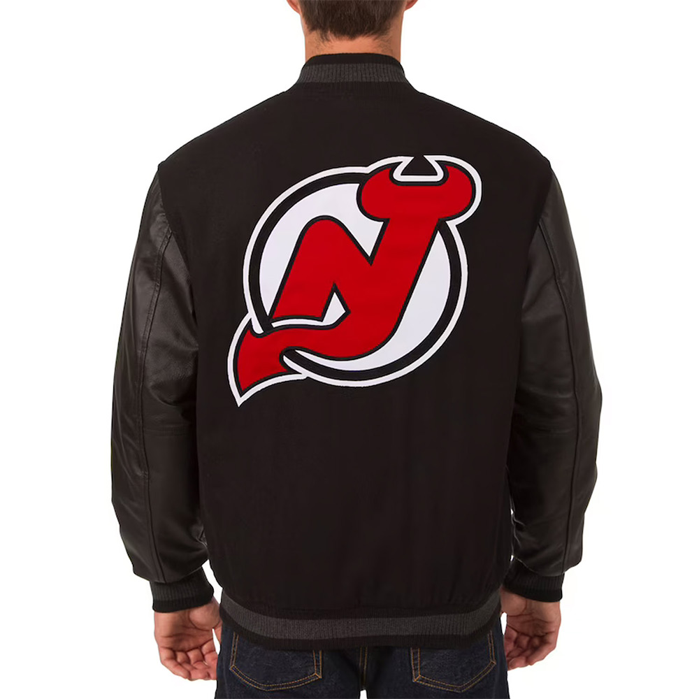 New Jersey Devils Varsity Black Wool & Leather Jacket