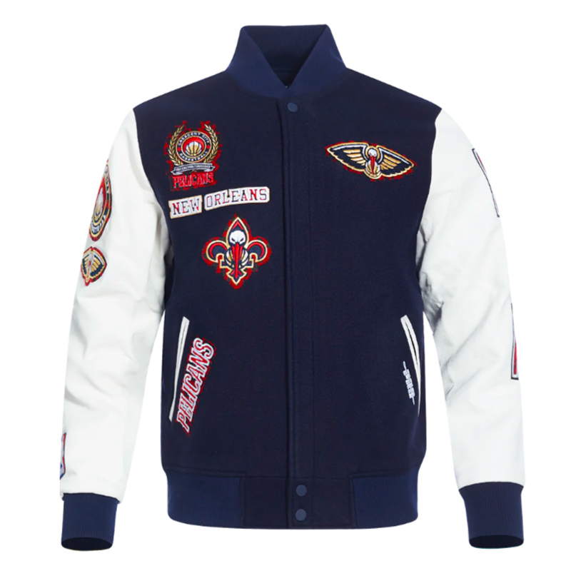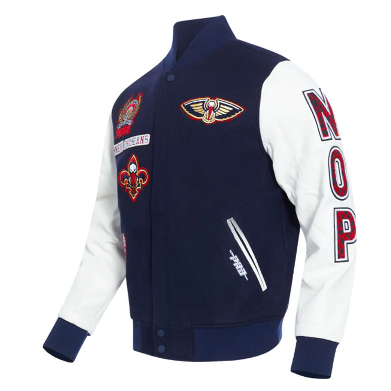New Orleans Pelicans Animal Print Varsity Wool/Leather Jacket