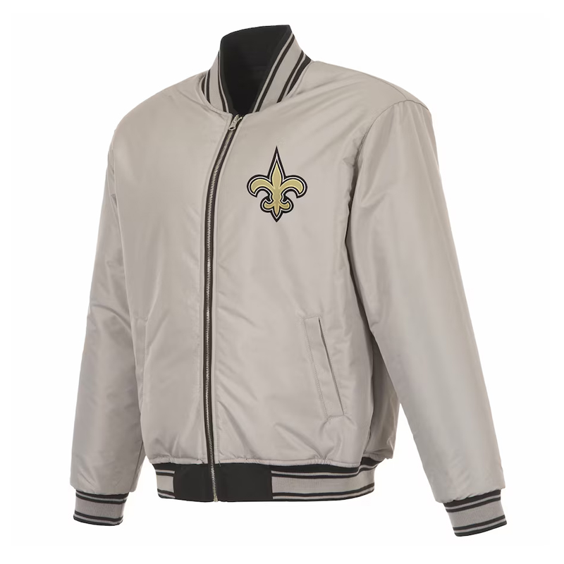 New Orleans Saints Black/Gray Full-Zip Reversible Flight Jacket