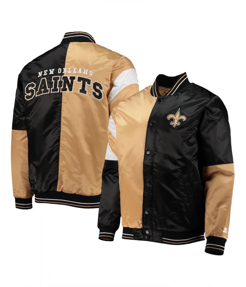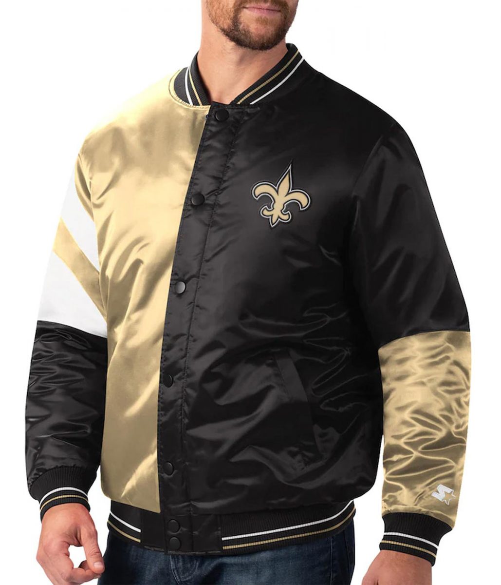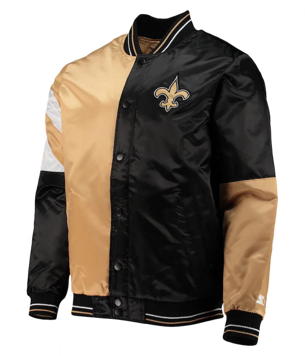 New Orleans Saints Leader Black and Gold Full-Snap Satin Jacket