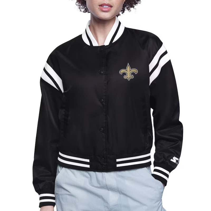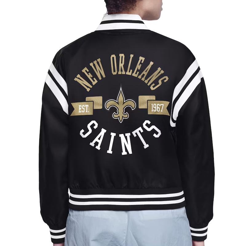 New Orleans Saints Printed Logo Varsity Satin Jacket