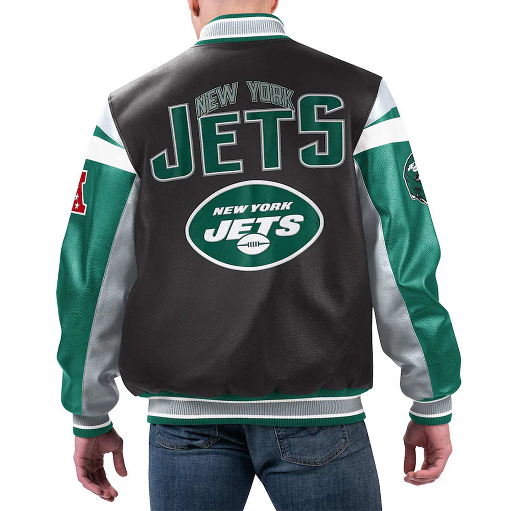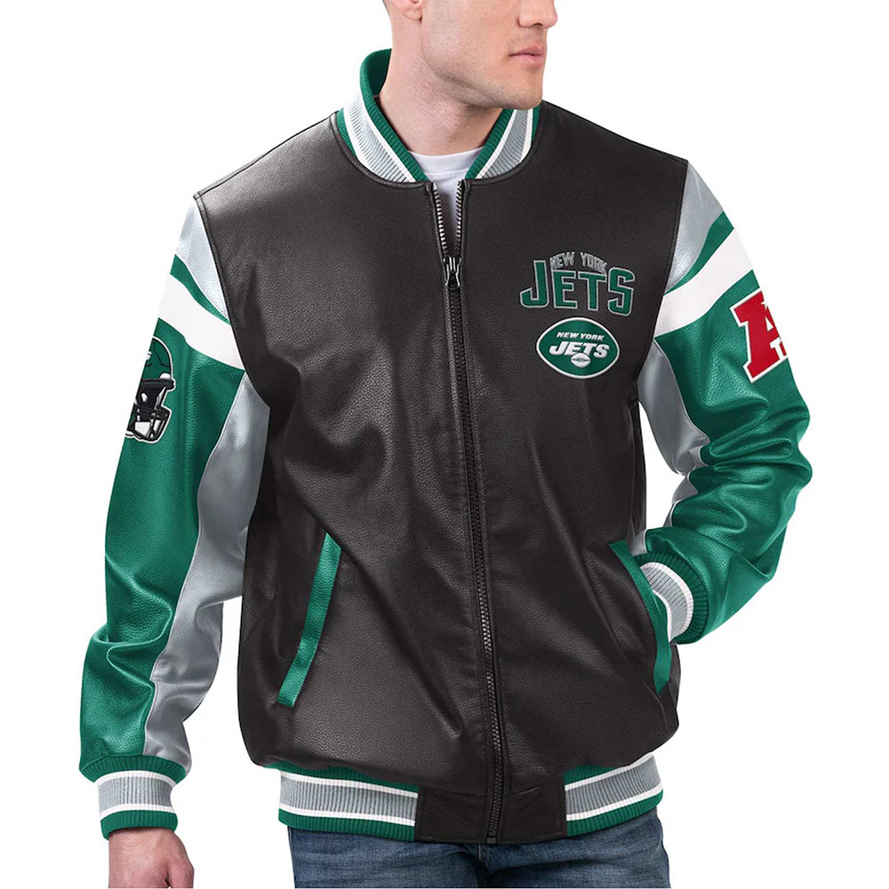 NY Jets Black Varsity Full-Zip Leather Jacket