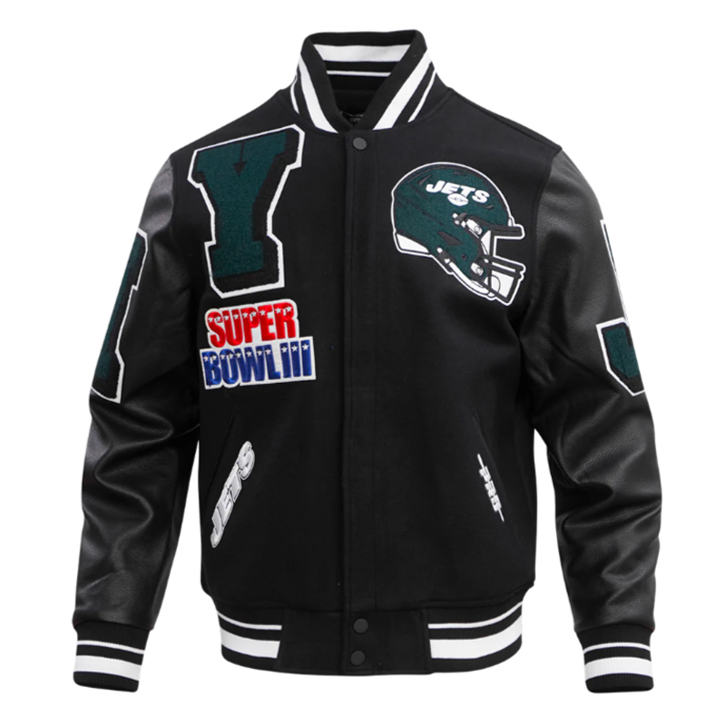 NY Jets Mashup Rib Varsity Wool/Leather Jacket