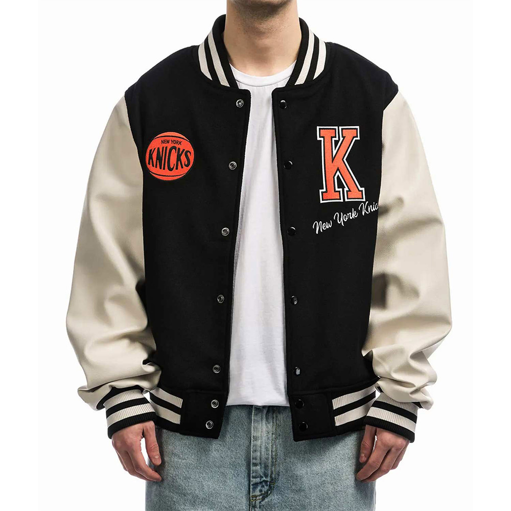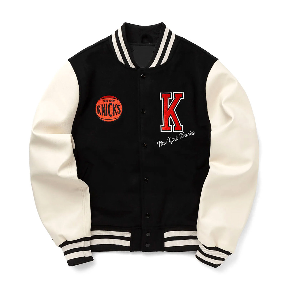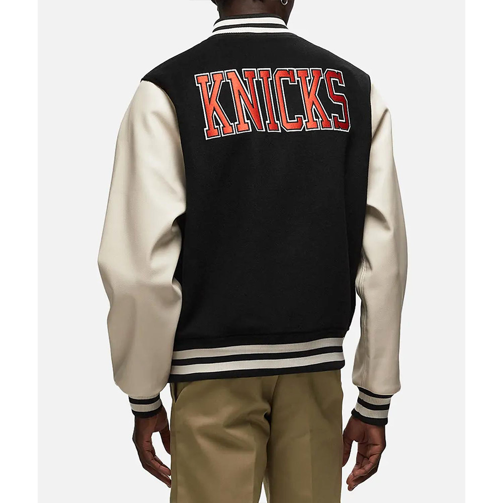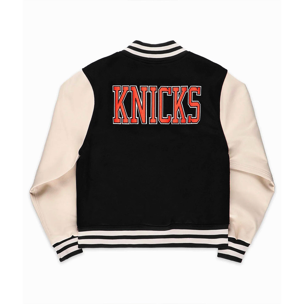 NY Knicks Black and Off White Varsity Jacket